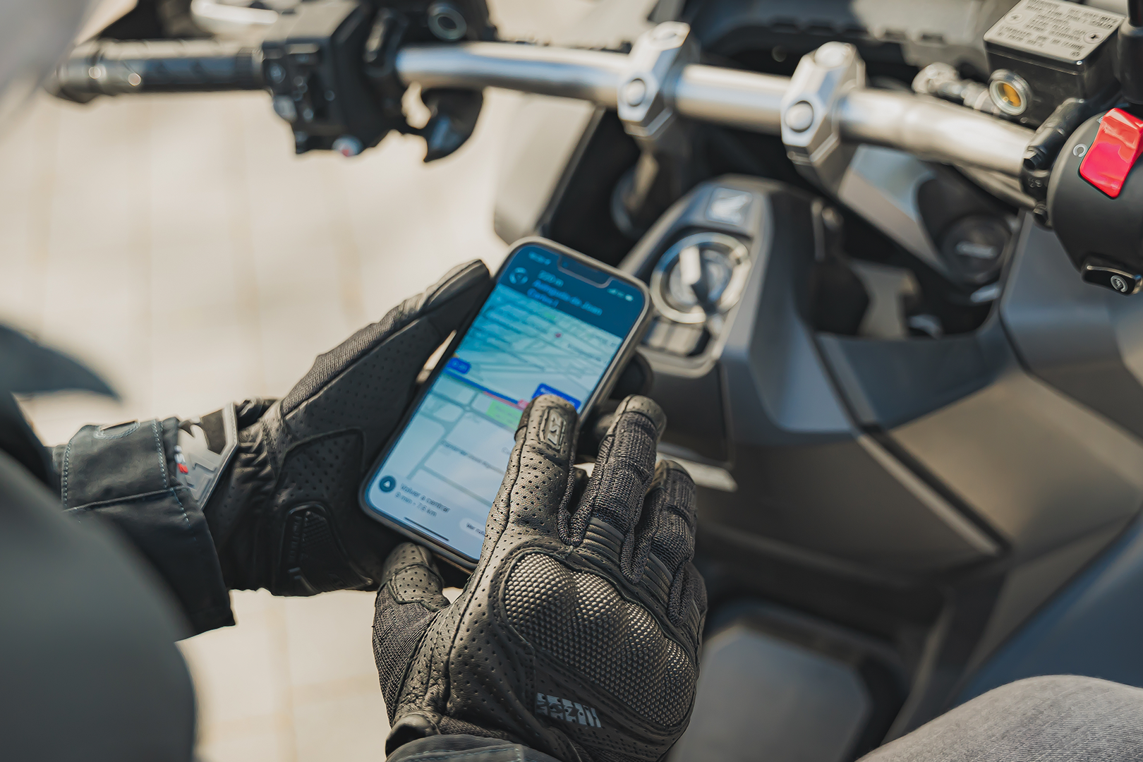 Elegantes guantes de piel con un nivel de ventilación excelente. Muy cómodos y seguros gracias a su protección rígida en los nudillos y la palma de la mano. Ajuste de velcro para facilitar el cierre y permitir una sujeción perfecta. Aptos para pantallas táctiles.